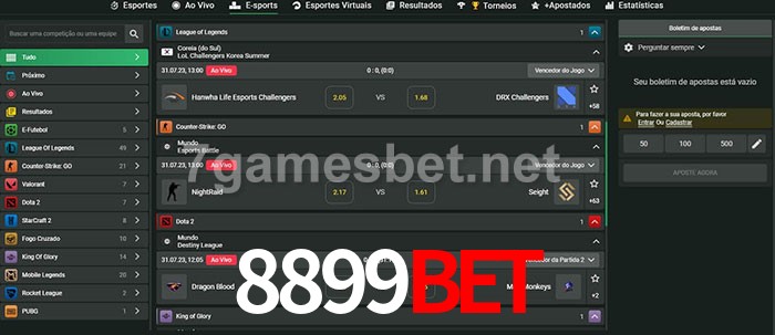 O 8899Bet oferece uma grande seleção de opções de apostas em e-sports com probabilidades competitivas
